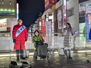 選挙戦最終日に、立川・生活者ネットワークの市議会議員あべみさが応援演説に立ちました。